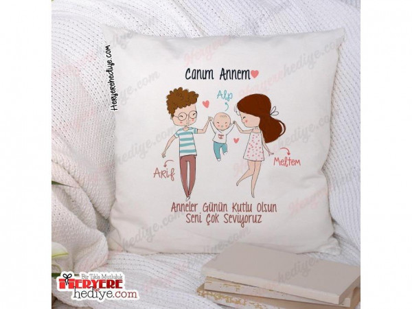 Aileye Hediye Anne Baba Çocuk Tasarımlı Yastık