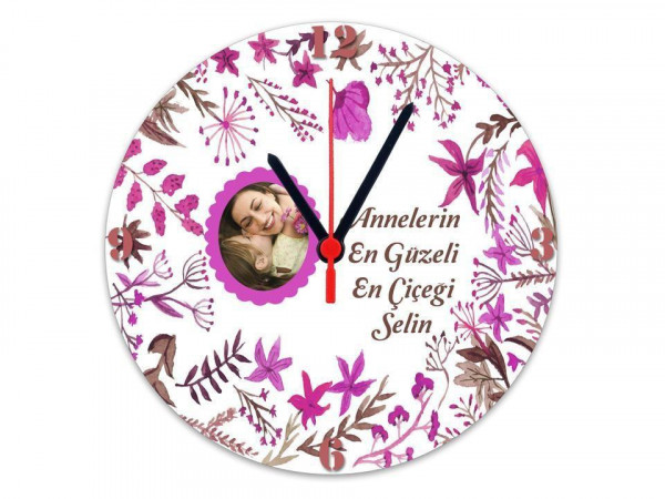 Çünkü Anneler Günü Hediyesi Pembe Çiçekli Duvar Saati üzerinde sizin belirlediğiniz bir fotoğraf ve annenizin sürekli okuyup mutlu olabileceğini düşündüğünüz bir sözü saate yazdırabilirsiniz.
