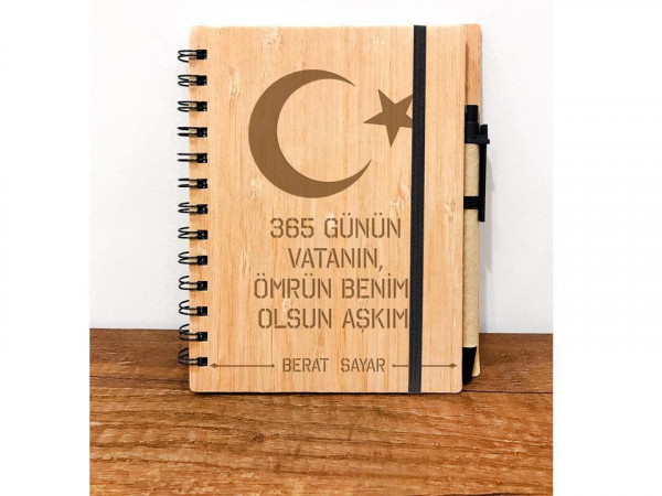 Ahşap yapısı üzerine ay ve yıldız tasarımı ve sevdiğinize söylemek istediğiniz mesaj ve isimle üretilecek olan Kişiye Özel Defter askere hediye edilebilecek en özel hediyelerden birtanesi olacak.