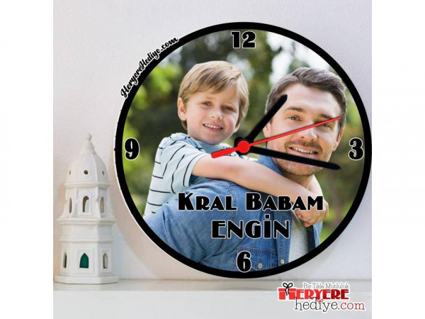 Babalar Günü Hediyesi Tek Fotoğraflı Duvar Saati