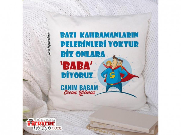 Babaya Hediye Kahraman Babam Mesajlı Yastık