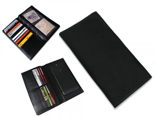 1'nci sınıf deri büyük boy isimli erkek el cüzdanı.