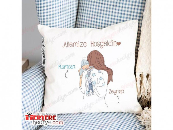 * Çocuğa Hediye Ailemize Hoşgeldin Mesajlı Yastık içi silikon elyaf ile dolu olarak gönderilmektedir.