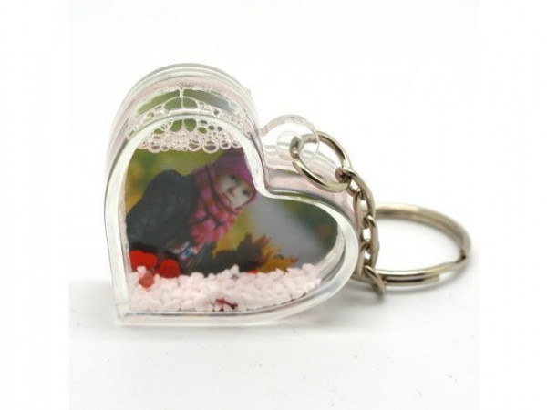Fotoğraf Çerçevel Mini Kalp Anahtarlık akrilik malzemeden üretilmiş olup 4x4cm boyutarındadır.