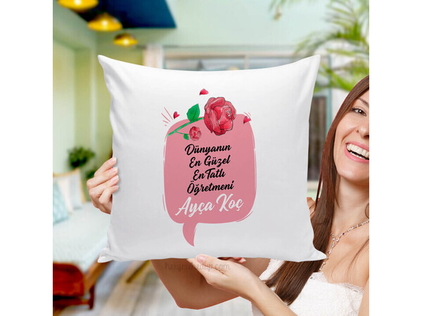 Öğretmenler Günü hediyesi olarak ne alsam diye düşündüğünüz anda bu sayfaya geldiyseniz artık rahatlayın düşünmenize gerek yok. Öğretmene hediye olarak düşündüğünüz hediyeyi buldunuz. Siz de öğretmeninize yanından ayırmayacağı bir hediye vermek istiyorsanız, en güzel öğretmene hediye seçeneklerinden biri olan kişiye özel isimli öğretmene hediye kare yastığı hemen sipariş verin.