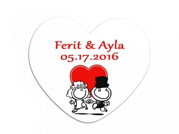 Kalp magnet üzerine yazdıracağınız tarih ve isimler ile tamamen size özel olsun..