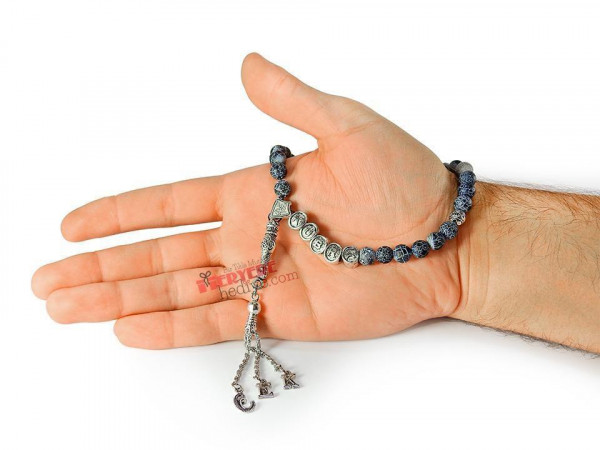 Kişiye Özel Lacivert Mat Akik Doğal Taş Tesbih