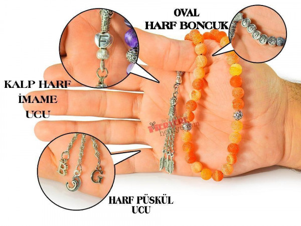Kişiye Özel Harf Püskül Mat Akik Güneş Modeli Tesbih