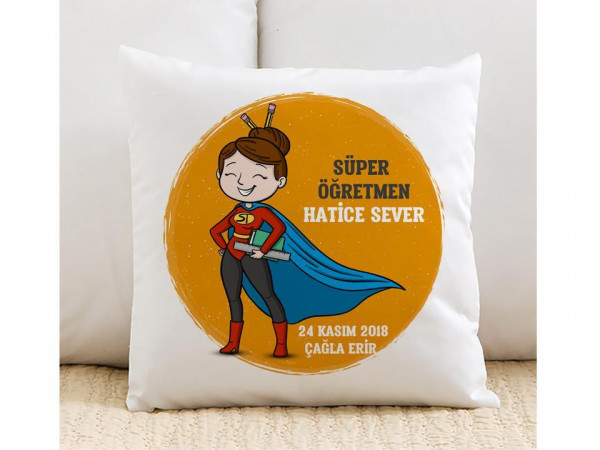 Öğretmenler günü hediyesi süper öğretmen yastık 38 x 38 cm boyutlarında olup içi silikon elyaf dolu yastığıyla birlikte gönderilmektedir. Farklı öğretmene hediye seçenekleri için öğretmenler günü kategorisini göz atmayı unutmayın