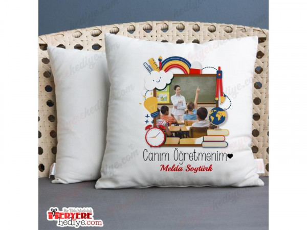 Öğretmenler Günü Hediyesi Renkli Fotoğraflı Yastık Modeli 38x38cm boyutlarında olup en iyi baskı sonuçları veren teknik ile baskı yapılmaktadır.. Yastık içerisinde yumuşacık elyaf dolgu bulunmaktadır.