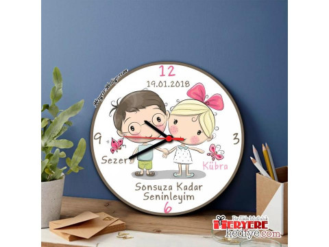 Sevgiliye Hediye Fotoğraflı Mesajlı Duvar Saati