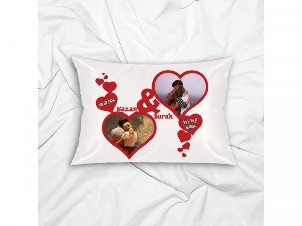 Sevgiliye Hediye Aşık Kalpler Yastık göndermiş olduğunuz 2 adet fotoğraf, isimleriniz ve özel bir tarihle sadece size özel olarak hazırlanan çok özel bir hediye alternatifidir.