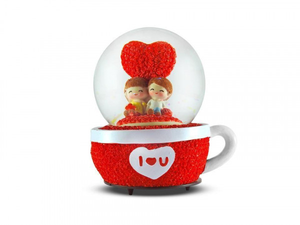 Sevgiliye Hediye Kırmızı Kalp Kuluplu Müzikli Su küresi 15 cm yüksekliğinde olup içinde sevimli mi sevimli bir çift minik aşık bulunmakta olup altında bulunan kurma anahtarı ile kurulup yaklaşık 45sn boyunca müzik çalıp dönmektedir.