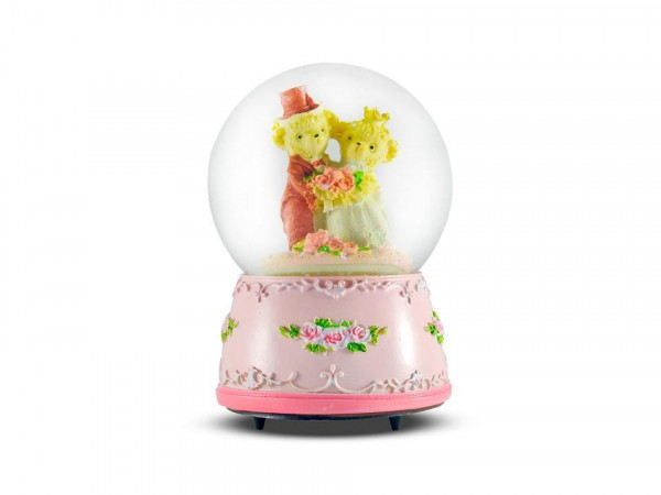 Şirin Ayıcıklı Pembe Renk Su Küresi 15 cm yüksekliğinde olup içinde birbirini çok seven iki minik ayıcık bulunmakta olup altında bulunan kurma anahtarı ile kurulup yaklaşık 45sn boyunca müzik çalıp dönmektedir.