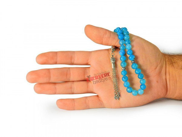 Kişiye Özel Turkuaz Parlak Akik Doğal Taş Tesbih