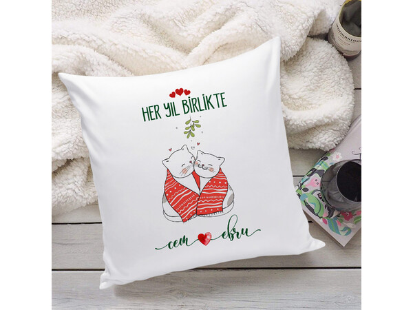 Yılbaşı Hediyesi Sevgiliye Kedili Tasarım Yastık
