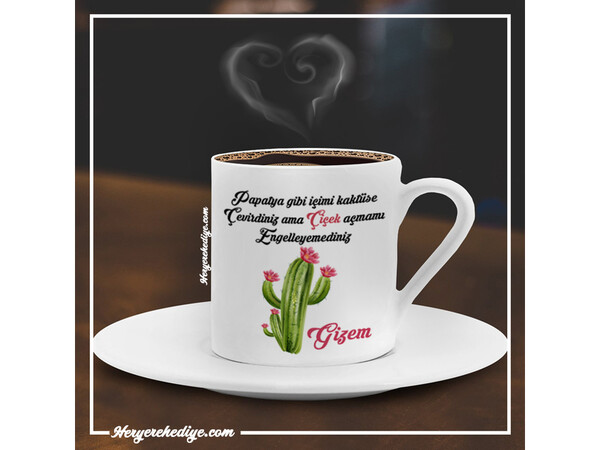 * Kişiye Özel Kahve fincanı 6 cm yüksekliğinde ve isteğe bağlı ahşap ve seramik altlıkları ile gönderilmektedir.